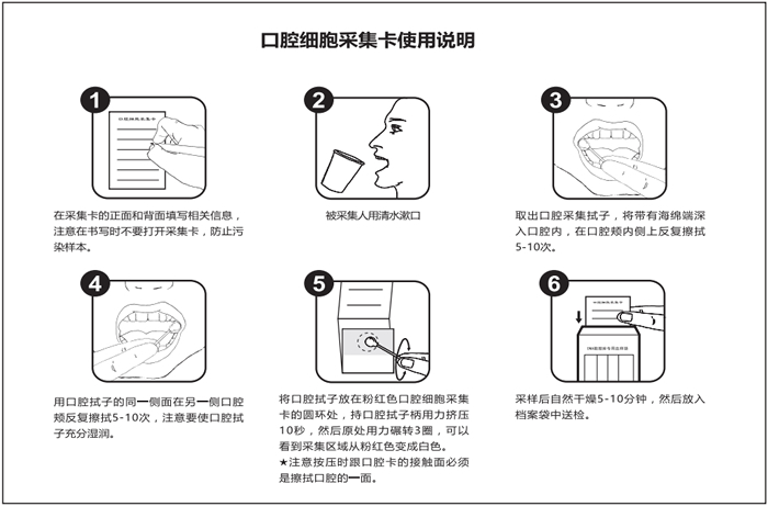 口腔細(xì)胞采集卡是一種以植物纖維為載體用于存儲DNA的新型介質(zhì),專為室溫下對包括唾液在內(nèi)的各種生物體液、細(xì)胞培養(yǎng)液等樣品進(jìn)行收集、運輸和存儲而設(shè)計。通過獨特的配方和生產(chǎn)工藝,當(dāng)含有生物體液的樣本接觸口腔細(xì)胞采集卡后,采集卡顏色從粉紅色變?yōu)榘咨?表示出生物樣本存在區(qū)域,便于后續(xù)打孔及PCR擴(kuò)增。